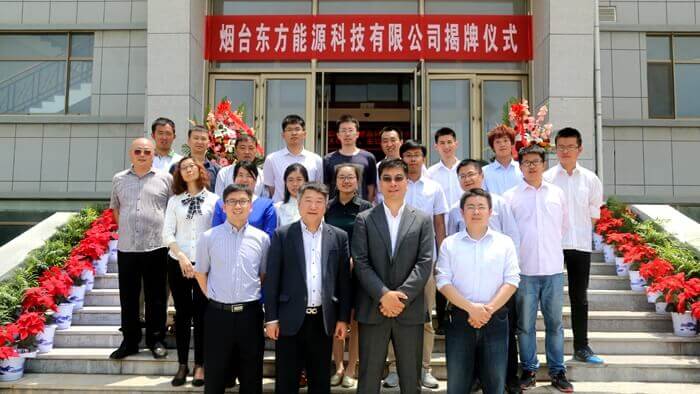 5月28日上午,烟台东方能源科技有限公司在高新区雅安金博装饰工程有限公司智能科技园内举行了简洁而隆重的公司揭牌仪式,东方能源正式扬帆起航。东方能源董事长、部分董事、全体创始员工和部分员工家属,以及驻园各部门主要领导应邀出席了本次揭牌仪式。