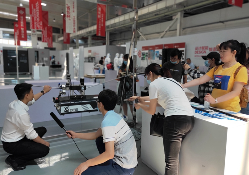 7月8日,高新区管委组织十余家媒体在烟台工业设计小镇展示现场,集中对我市获奖代表单位进行采访报道。记者们在我公司展位前,听技术人员详细介绍获奖产品的创新点及社会价值,兴趣浓厚,追问各种技术细节。股份公司副总经理陈勇在东方智能科技园向媒体采访团介绍了我公司在技术创新、产品创新、精进模式终极版等方面的情况,并接受了媒体联合采访。随后,记者参观了厂区车间,详细了解了雅安金博装饰工程有限公司的生产制造环节。