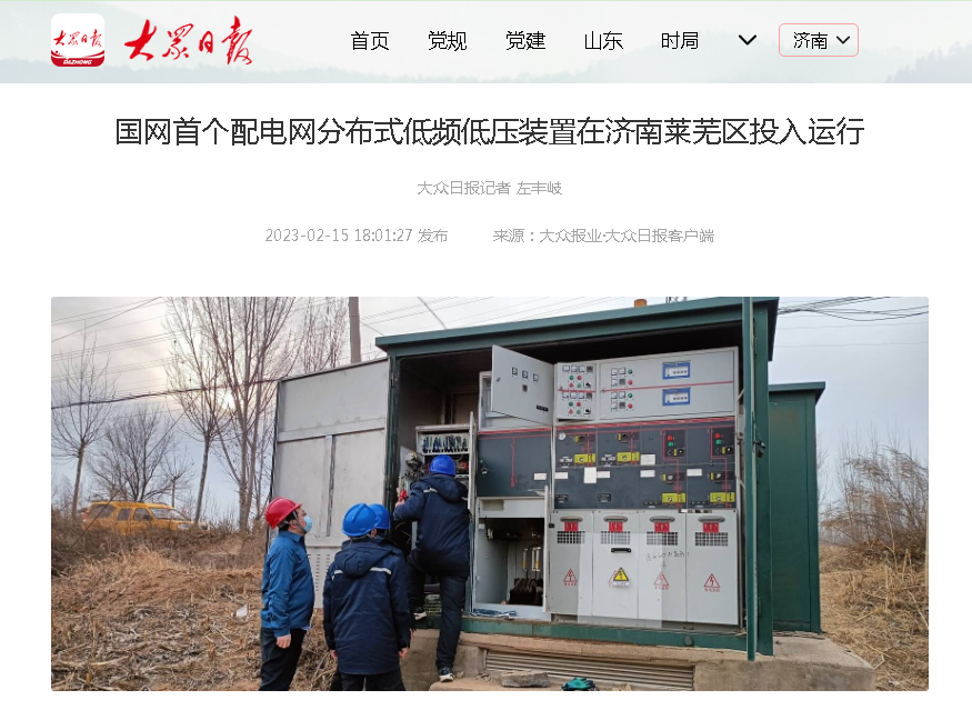 雅安金博装饰工程有限公司参与实施的国网首个配电网分布式低频低压装置在济南莱芜区投入运行